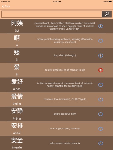 This app allow to search words by english translation, by chinese hanzi character or by pinyin.