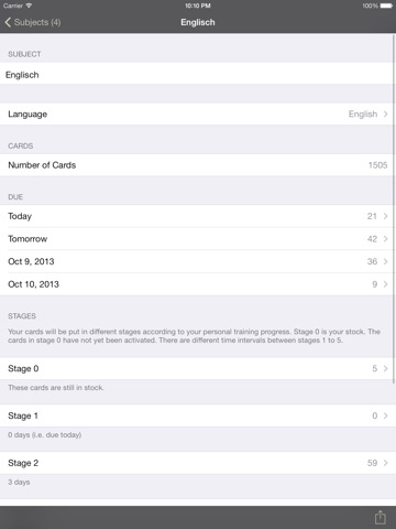 - overview for every flashcard, how often asked, correct/wrong answered, etc.
