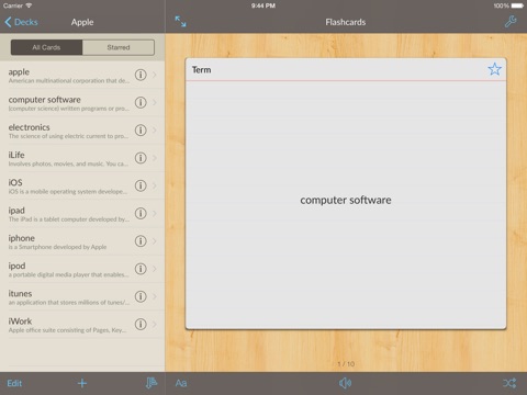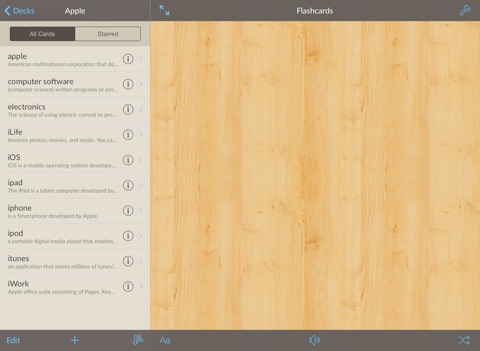 Flashcards is a universal app, which means you only have to buy it once to use it on your iPhone/iPod Touch and iPad. Developed for iOS 8.