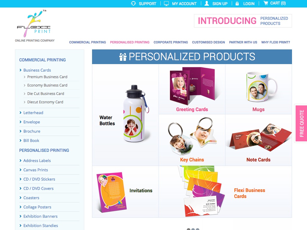 Flexi Print offers 37 Print Product Categories with 1000+ ready to use designs. Select the design, replace text, upload your own Image / Photo, check digital proof on fly, Pay Online & we deliver final printed product anywhere in India. (International Deliveries Are Also Possible On Special Request)