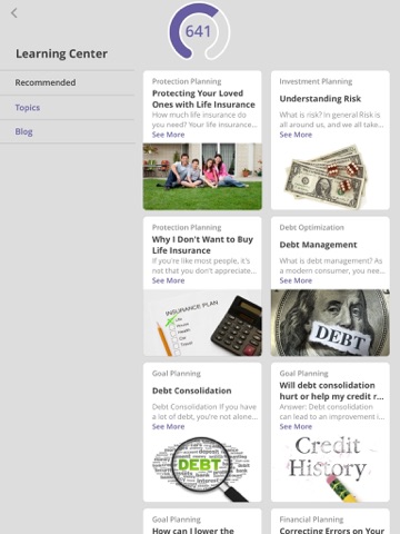 • FlexScore Learning Center with hundreds of educational articles on personal finance curated for your exact needs