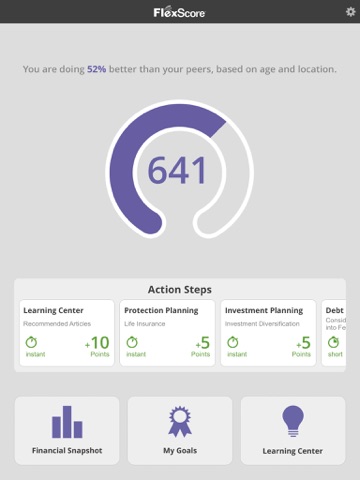 • Aggregation feature links FlexScore to your bank, credit union, company retirement plan, and brokerage accounts (8,000+ financial institutions supported)