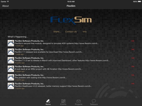 The FlexSim app uses a convenient mobile interface to bring the latest on modeling and simulation: