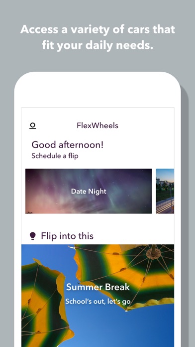 Match your car to your life. A FlexWheels subscription lets you flip between cars as your needs change. Replace car ownership or leasing with a simple monthly subscription. Drive SUVs for family trips, fun sports cars for date nights, and luxury sedans for the daily commute. Insurance, maintenance, cleaning, and taxes included. Always have the perfect vehicle for the moment.