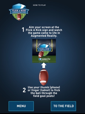 Kick field goals in augmented reality by pointing your phone at the magic target and watch your phone turn into a virtual football field! Flick balls through the uprights to score accuracy points, and make your way up the leaderboard!