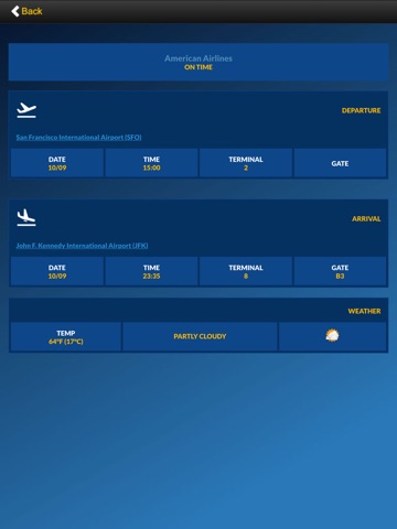 Get real-time status for flights arrival and departure info, live weather reports, route maps, check status updates, weather delays and gate location.