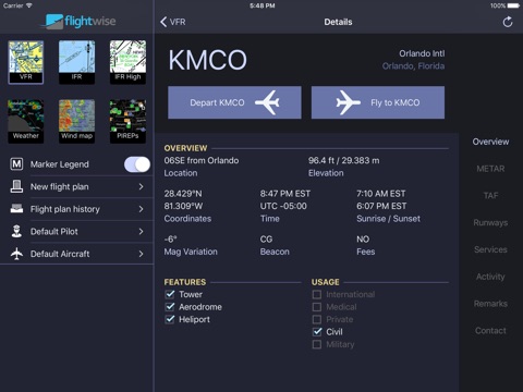 Flightwise FlightPlanner & Chart Explorer is an aviation application designed for pilots. With it, you can create and file flight plans, view aviation charts and weather, and lookup airport information.
