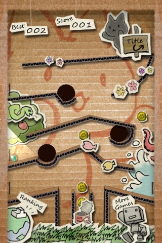 Cute cat stage made of paper, realistic pre-rendering 3DCG stage, please get a coin. Operating with realistic ball physics of motion.