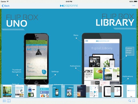 Flip Box app allows you to publish all your digital publications within a portable app on your tablet or phone. Your reading is intuitive and interactive pages are enriched with videos, pictures animations and other multimedia content.