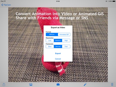 The animation can be converted to MPEG-4 video or animated GIF format to share with friends via Email or SNS.