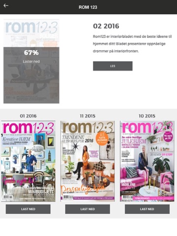 Les blant annet Her og Nå, Hjemmet, Norsk Ukeblad, Vi Menn, Bonytt, Rom123, Donald Duck, Kamille, Hytteliv, Hageliv & Uterom og Villmarksliv. Av svenske og danske blader kan du lese blant annet Alt For Damerne, Hus & Hem, Hendes Verden BoligLiv, Euroman, Eurowoman, King, Café og Auto Motor & Sport. Du får også tilgang til tidligere utgaver av hvert blad.