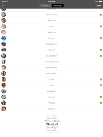 **Individual transition effects setting. Different transition effects can be applied to different photos.