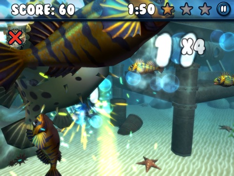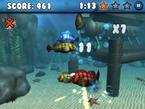 Its a fish frenzy! Clear the levels in record time to beat your friends, or while away some time with the Endless Mode, tapping the fish to send them flying! But youll need to be careful and quick to avoid Spike the Pufferfish, and youll need quick reflexes to get Wattson the Eel before he electrifies you. Just remember: when fish go flying, sharks will investigate the commotion!