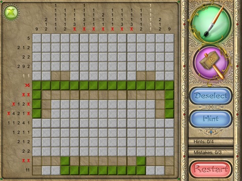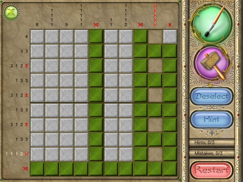 An old Japanese logic puzzle takes on a new look with FlipPix Art! Touch tiles to paint them or break them to form colorful components of paintings. The goal is to use logic to determine which tiles should be filled to reveal a hidden picture.
