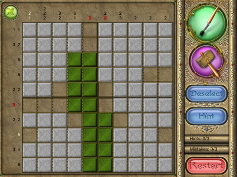 An old Japanese logic puzzle takes on a new look with FlipPix Art! Touch tiles to paint them or break them to form colorful components of paintings. The goal is to use logic to determine which tiles should be filled to reveal a hidden picture.