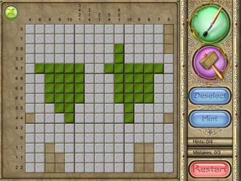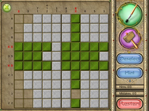An old Japanese logic puzzle takes on a new look with FlipPix Art! Touch tiles to paint them or break them to form colorful components of a painting. Use logic to determine which tiles should be filled to reveal a hidden picture.