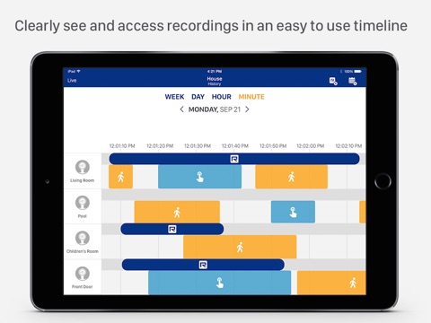 Single Timeline – View and select a history of all recordings and events on a single timeline sorted by week, day, hour, or minute.