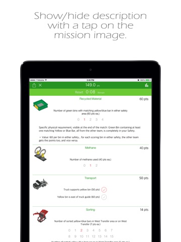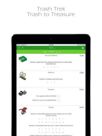 Use this app to quickly and effortlessly calculate scores while navigating the messy world of trash in this years FIRST LEGO League Trash Trek robot challenge! (Always frequently check the official FLL challenge updates for the latest rules. Updates to this app will be released to reflect any official rule changes as quickly as possible.)