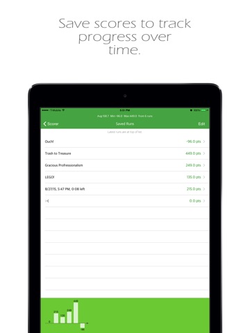 - Tapping a bar of the bar graph will highlight and scroll into view the corresponding run in the saved list.