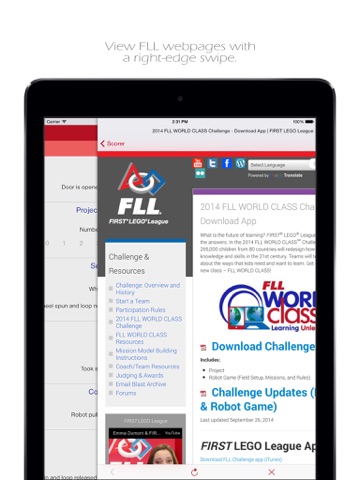 - Convenient access to FLL webpages within app with a simple right-edge swipe.