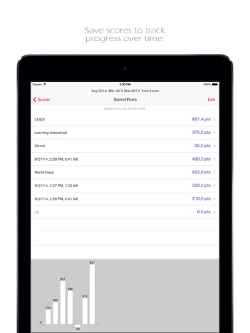 - Tapping a bar of the bar graph will highlight and scroll into view the corresponding run in the saved runs list.