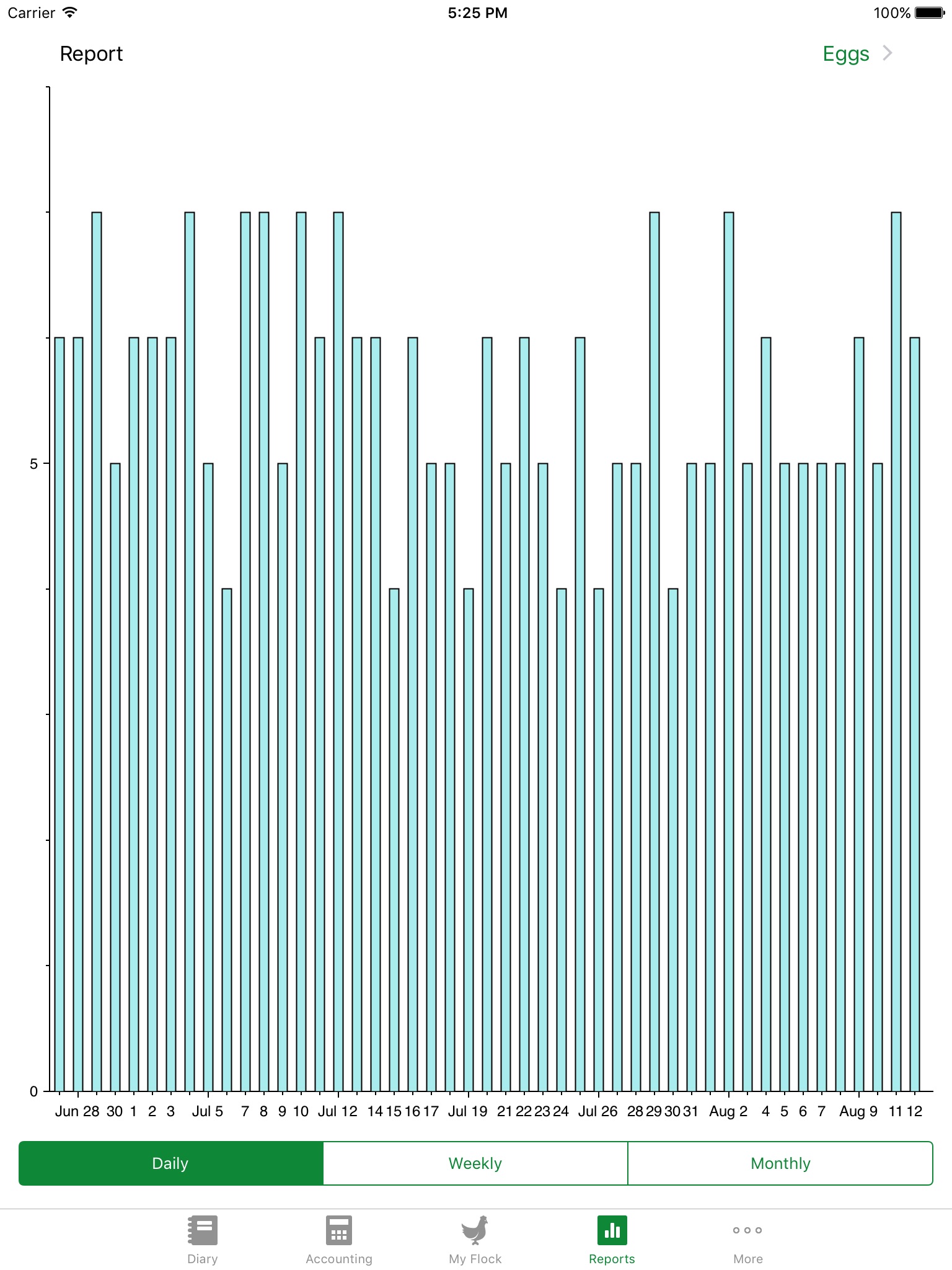 - Instantly see daily, weekly, and monthly charts of your feed and eggs.