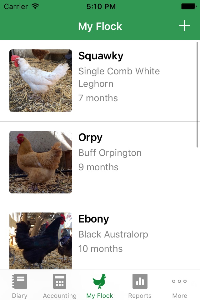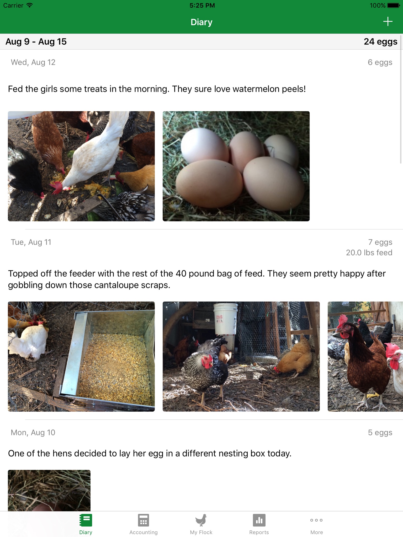 Now its fun and easy to track the health of your flock. Learn how your chickens grow and identify potential problems with clear and insightful graphs of eggs and feed. Take pictures and notes so you remember those special moments as your cute little chicks become laying hens. Keep track of your sales and expenses to measure your profits and productivity.