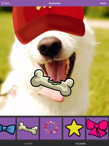Capture stunning photos with a custom camera equipped with pet-friendly sounds and photo enhancement tools.