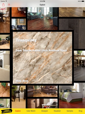 Browse through every floor from the latest Lumber Liquidators’ catalog right in the app. From Brazilian Cherry, to Oak, to Laminate, Bamboo and beyond—it’s all at your fingertips.