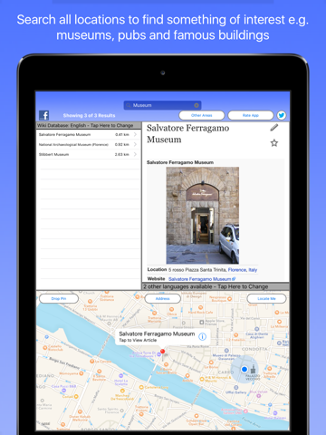 Florence Wiki Guide shows you all of the locations in Florence, Italy that have a Wikipedia page.
