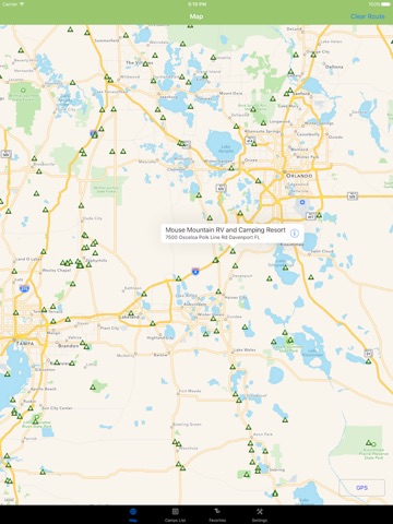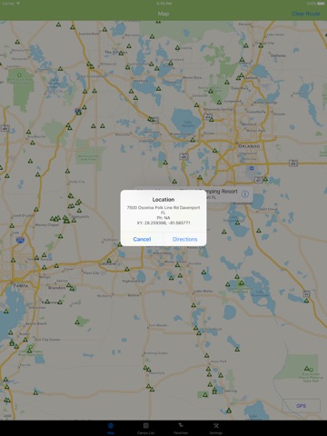 Camping spots & RVs is a simple and easy to use map to find the nearest Campsites or RV Park locations.
