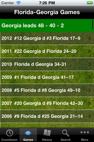 The ultimate Florida-Georgia rivalry app is now at your fingertips. Follow the celebrated and historic Florida Gators vs. Georgia Bulldogs Rivalry with ease and simplicity.
