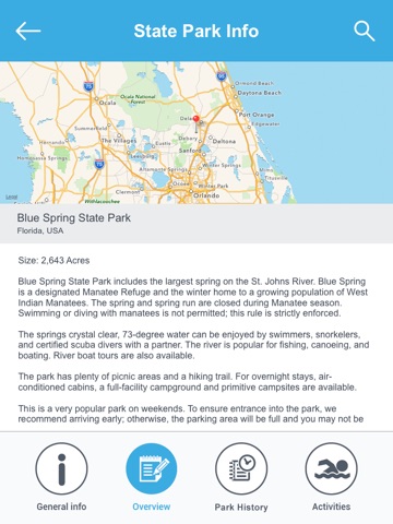General Information, Overview, Trails, Park History, Activities, Park Map, Directions, Near Search