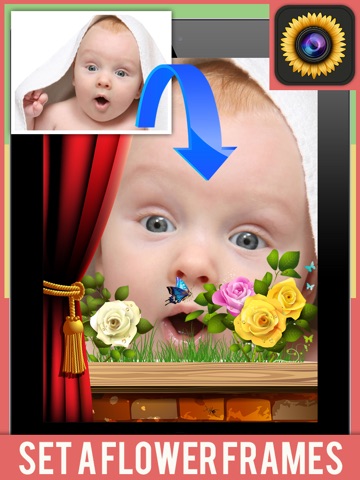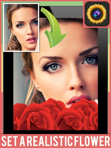Choose photo from gallery or take new photo with camera, then select flower effect and adjust it on your photo.