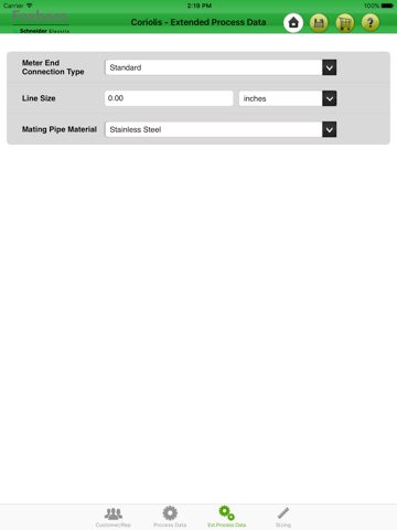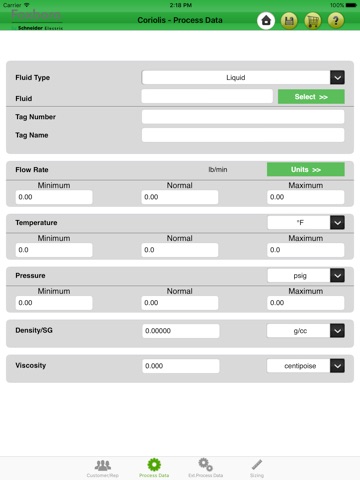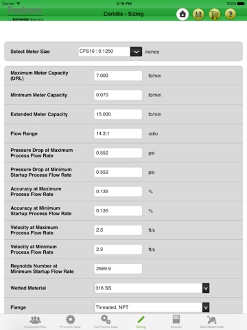 1)Size the meter for a process fluid selected from the applications database, or enter a process fluid with its physical data.