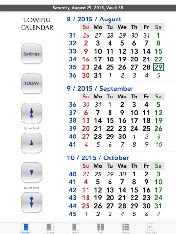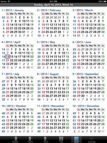 This App provides you with a single, a twin, a week-based, a quarter and an annual calendar.