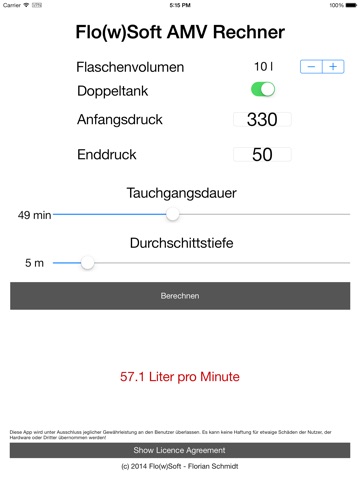 Diese App berechnet den durchschnittlichen Luftverbrauch beim Tauchen oder im Atemschutzeinsatz in Abhängigkeit von folgenden Faktoren