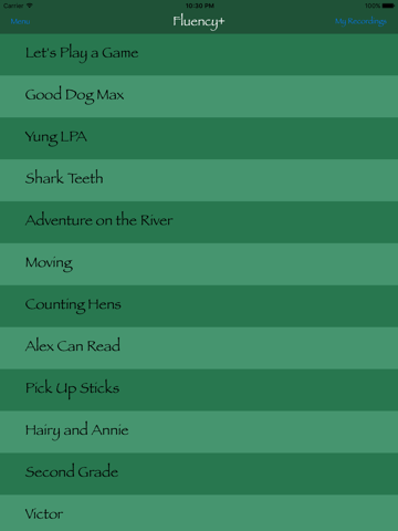 An app that encourages young people to improve their reading fluency through a continued, directed focus on reading material aimed towards their abilities. Utilizing Google docs learners can have text and passages shared which they can use to improve their reading proficiency and then further share their progress with teachers or other educators.