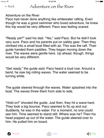 Teachers can select passages that they wish students to practice or ones that they feel match the ability of the individual student. The student then accesses these texts and reads them through the app, recording them as they do so. Once they have done this they can then send this recording, along with the information on their fluency (a score is given with how many words they have read per minute) and then this can be assessed, along with the recording to then target any further texts or passages that might continue to aid fluency and proficiency. Text can be zoomed in by the usual pinching of the screen and this allows the reader to be able to adjust things to the right size. With the feature of being able to change the font also part of the system and a specific dyslexic friendly font it means that all readers can access the app.