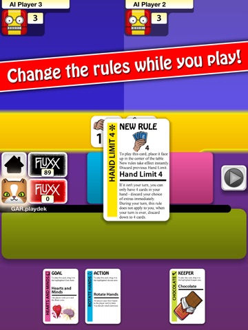 This app really does a great job of bringing this wacky card game to life! I only have 2 suggestions: 1. LANDSCAPE Mode! Please. If there was ever a game that should allow landscape mode, its this one. 2. THEMES. If you added some of the themed decks (Star Fluxx, Pirates, etc) as in-app purchases, I would happily buy them! (and I feel sure Im not the only one)