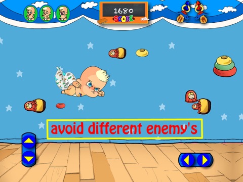 Help the baby fly through the the toys - dont let the toys hit your baby!