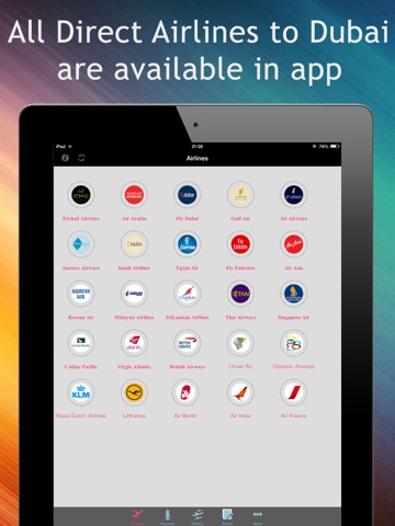 list of all Direct Airlines to Dubai in all around the World also this application for every one and getting a great benefit for who want to book tickets quickly through smart phones from all over the world.