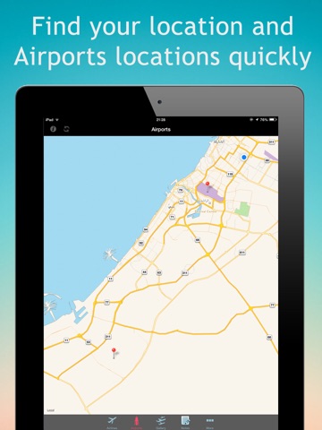 Map of airports locations and how to arrive to them also your location is