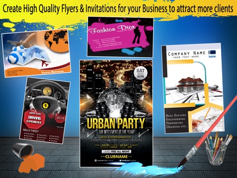 Create professional unique flyers, invitations, presentations, designs, logos, events, cards for your parties, clubs, events... app has lots of pre made backgrounds and designs for you to use or you can easily import your own or from web / camera / photo library.
