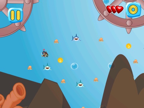 Help the pirate find his way around the dangerous sharks
