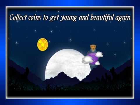 This is simple flying game where you control a witch on a broom in the sky and collect as much coins are possible so witch can get her young and beauty back. You are out to find rejuvenation potion on this full moon night but try to avoid planes, gargoyles and giant bats otherwise you fall way down.