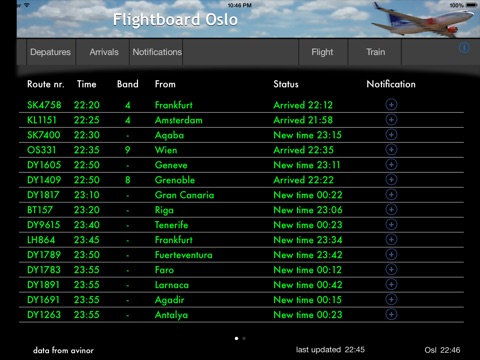 Flightboard gives you updated information on all commercial flights depaturing and arriving on public airports in Norway.