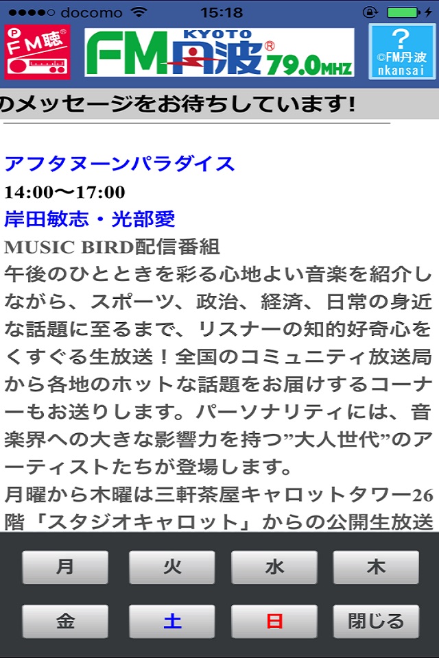 また、放送音声だけでなく放送中の番組の番組名、番組内容、ホームページ、twitter、地域の天気予報などを見ることができます。