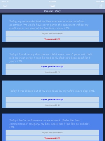 FMyLife is an app about sharing the hilarious, awkward, embarrassing, or sad things that happen in your life. Every day, new funny posts are uploaded to make you feel better about your own life. Post your own FMLs, or just vote on others.