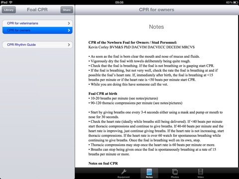 Foals can require immediate resuscitation after birth. This App gives owners clear step-by-step instructions on how to administer CPR until the veterinarian arrives.